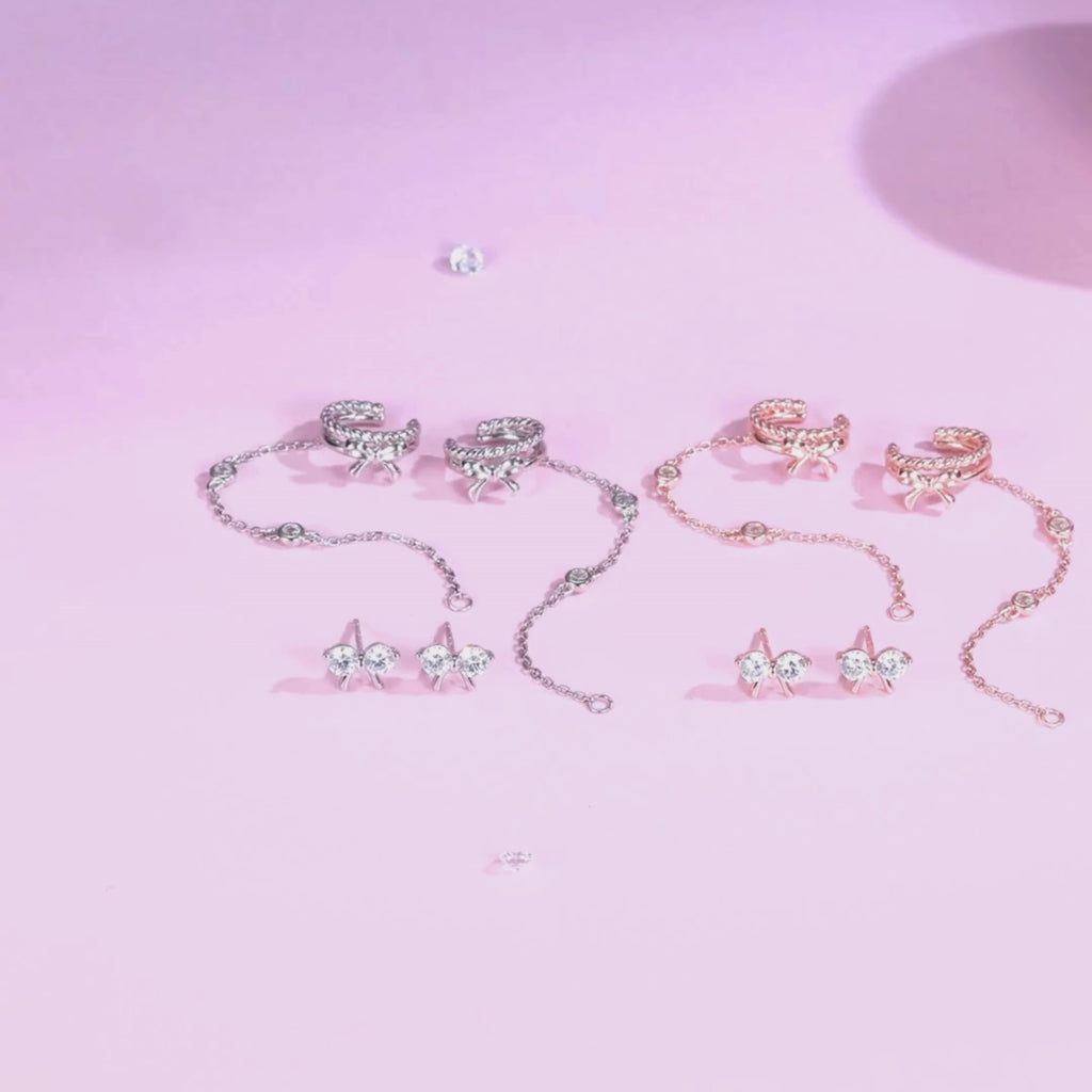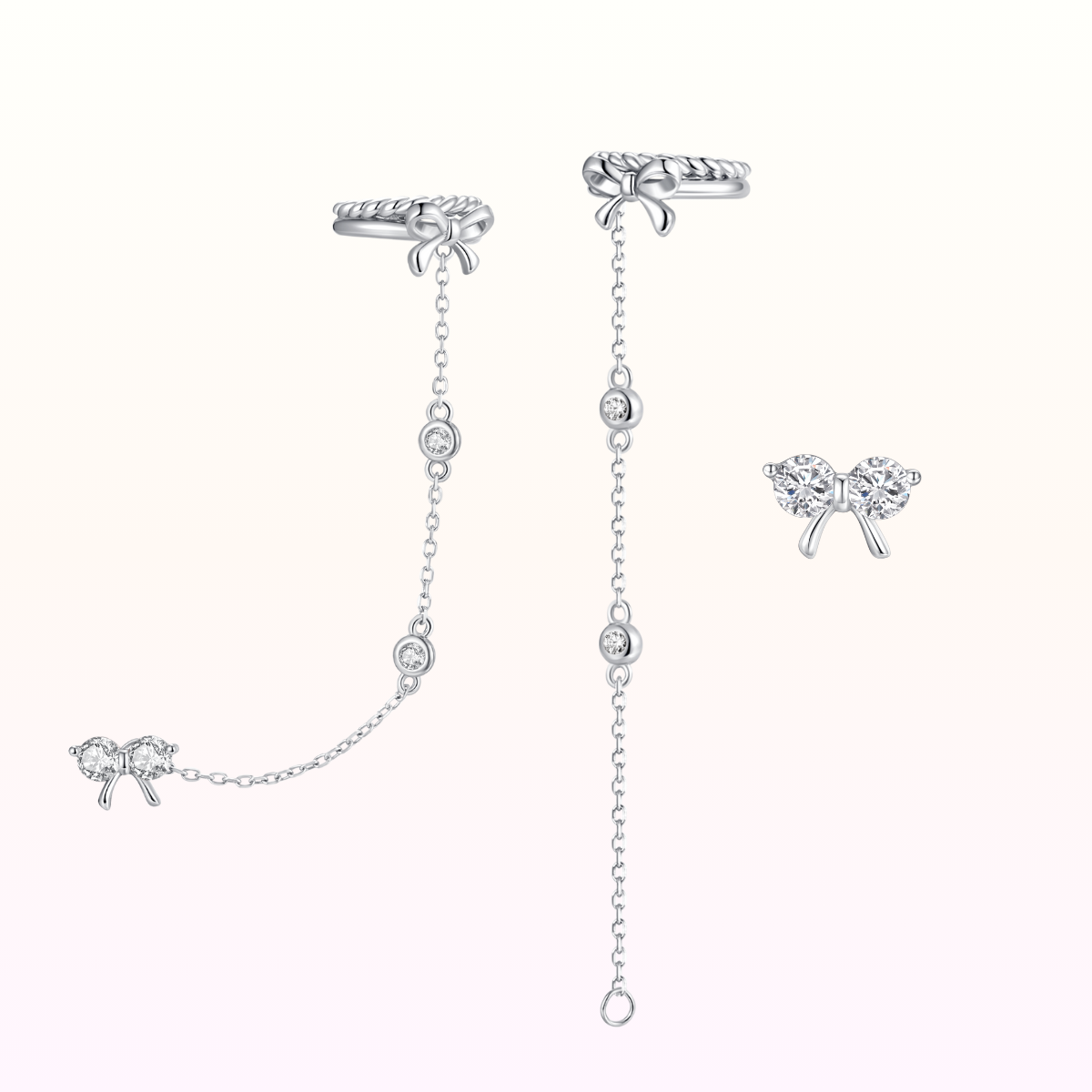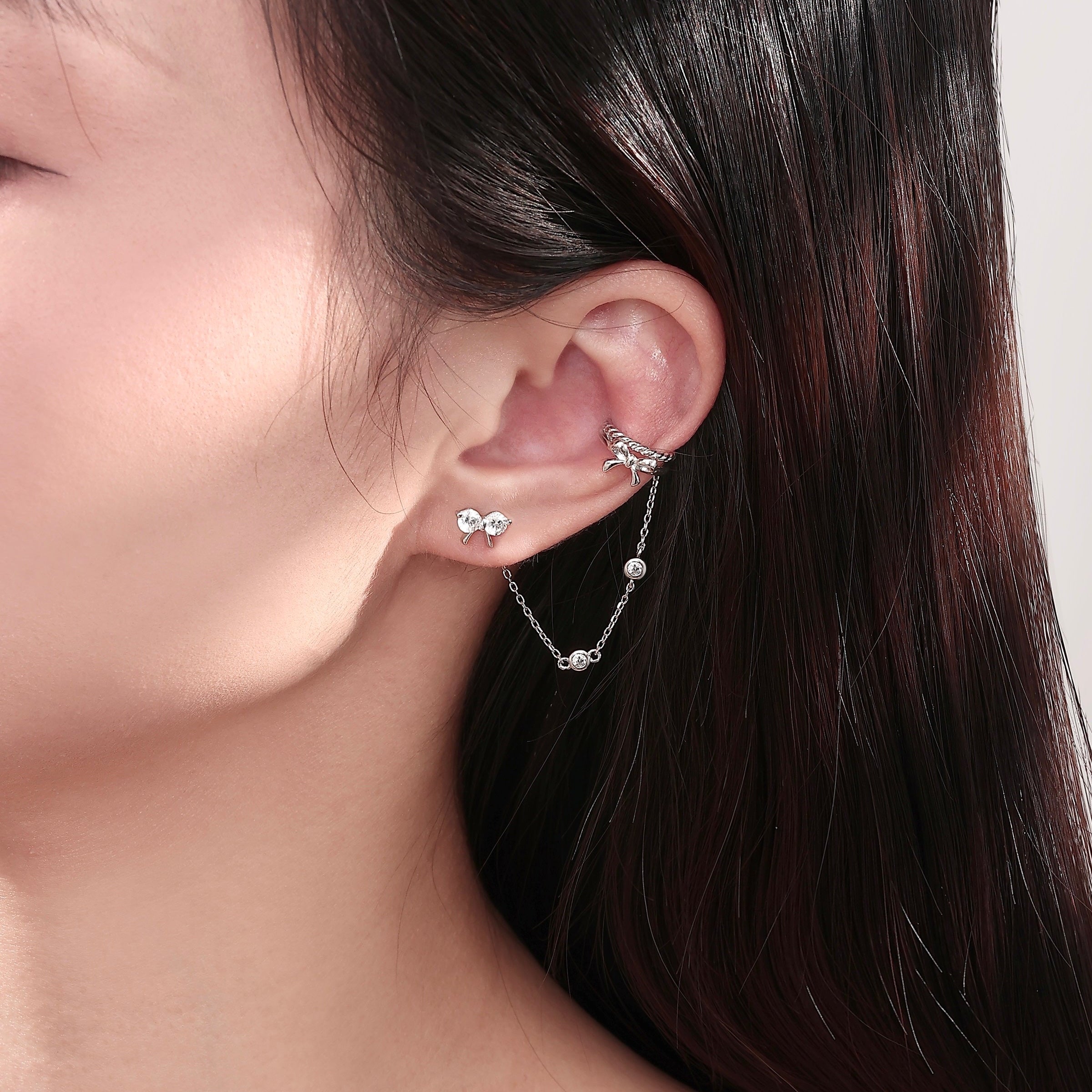 Yumi Ribbon Dangling Earcuff Set 925 Silver (Two Ways Wearing)