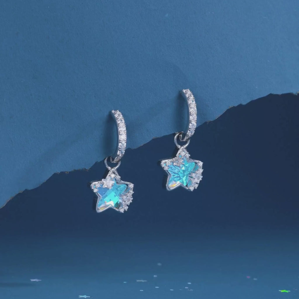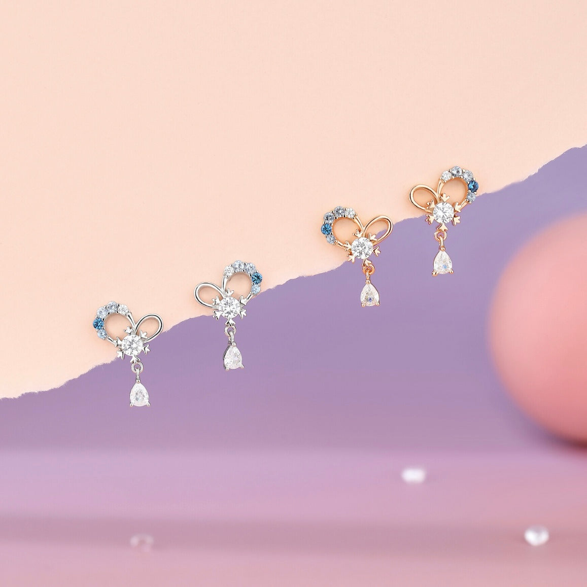 Aurora Ribbon Heart Dangling Earrings 925 Silver