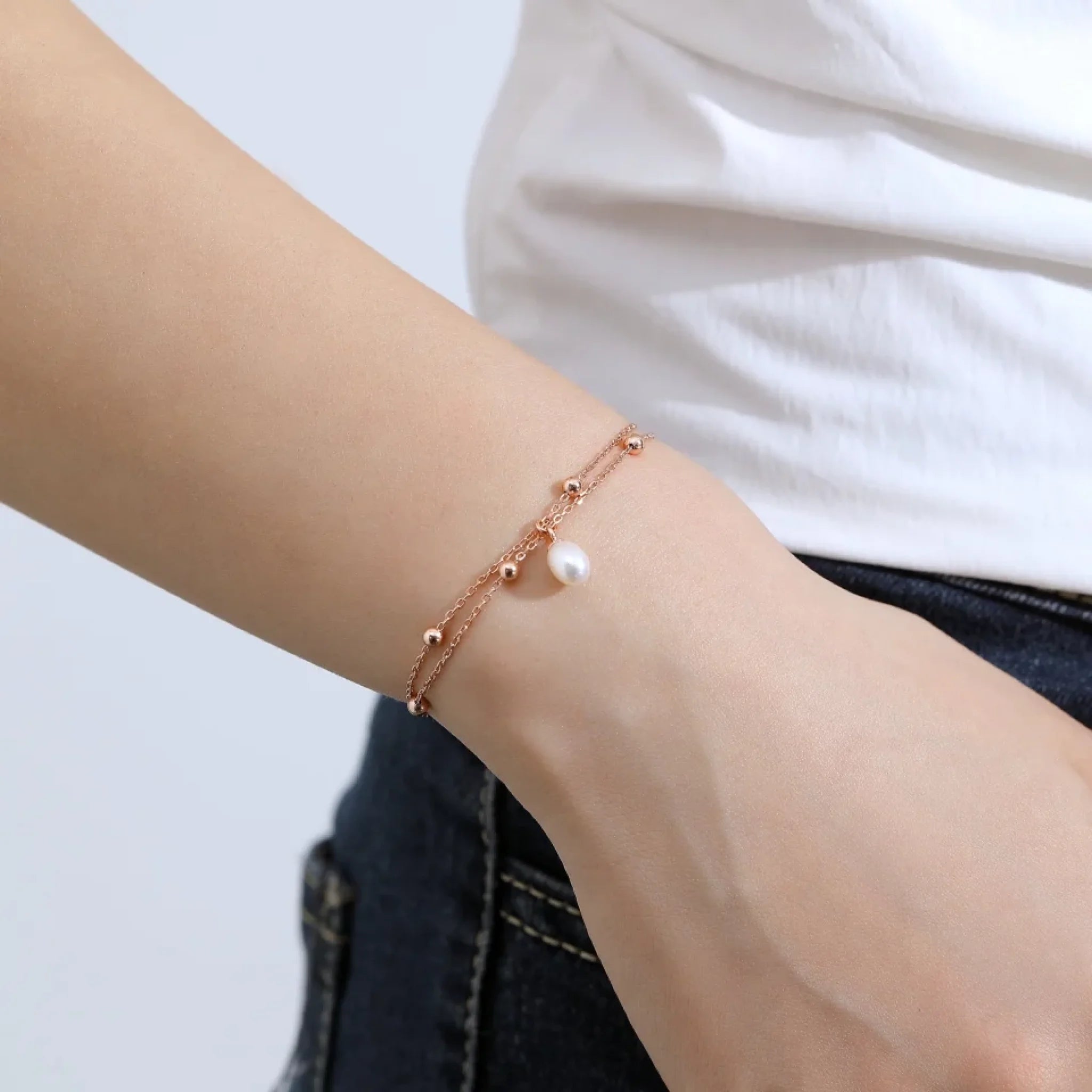 Available ProductCharlotte Beaded Double Chain Bracelet 925 Silver