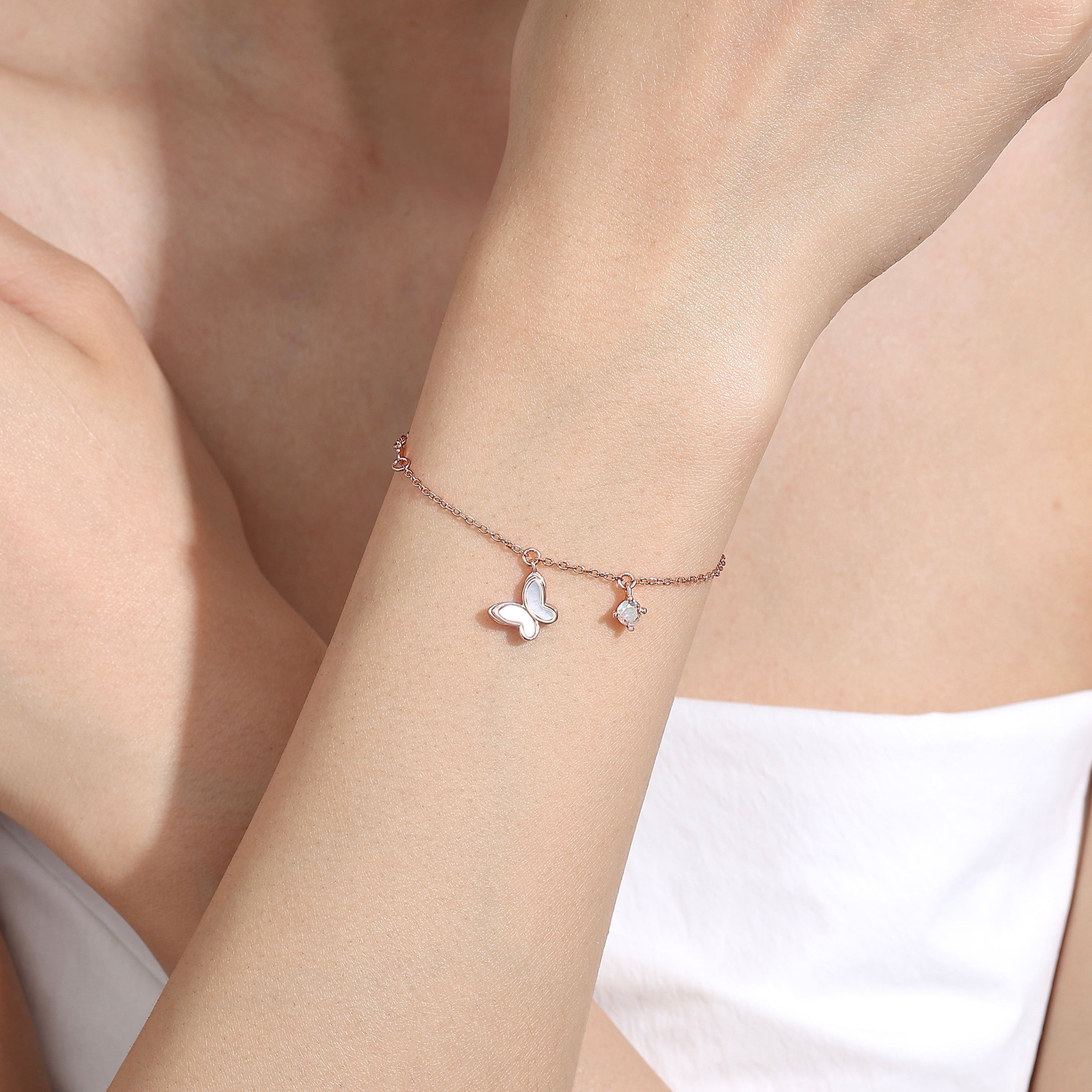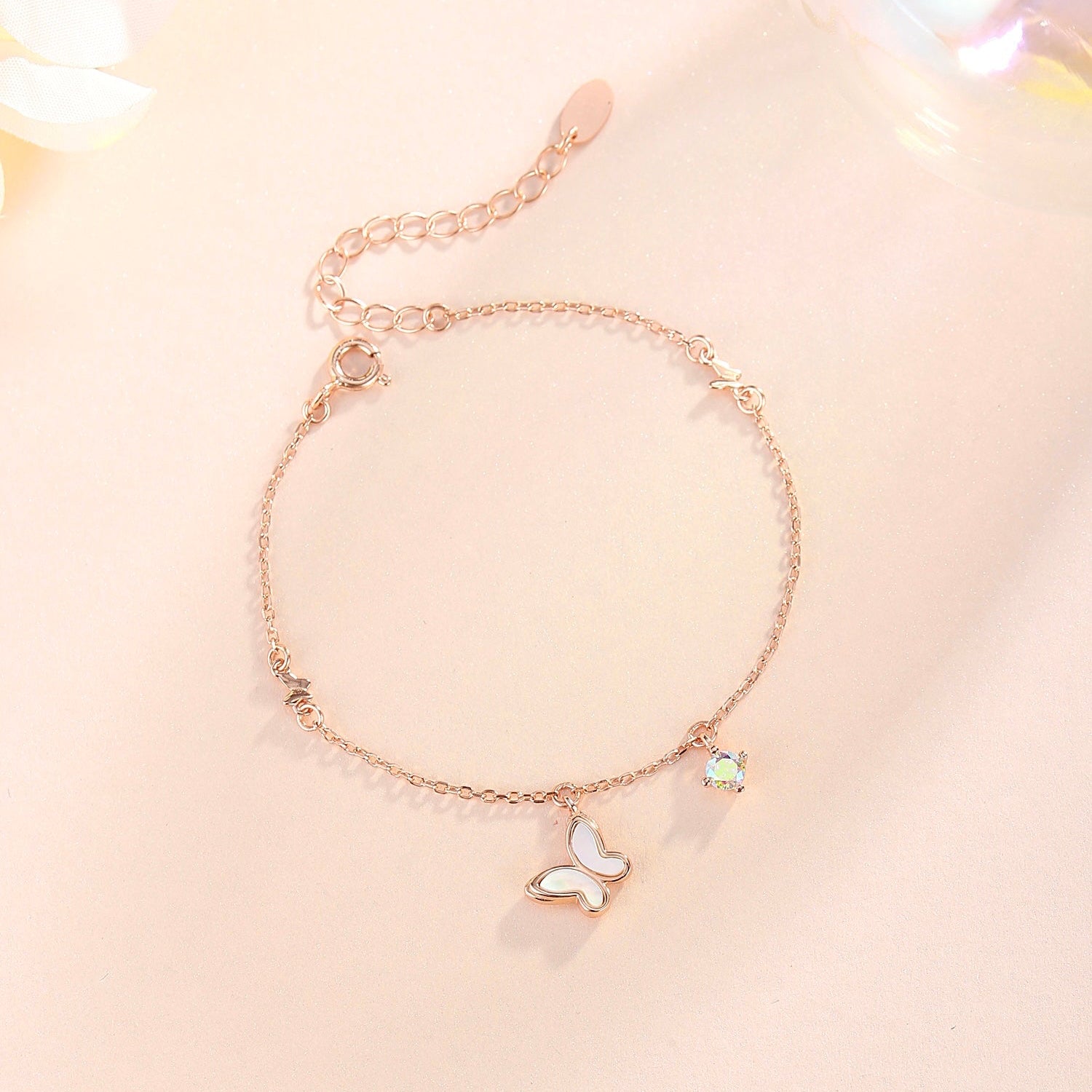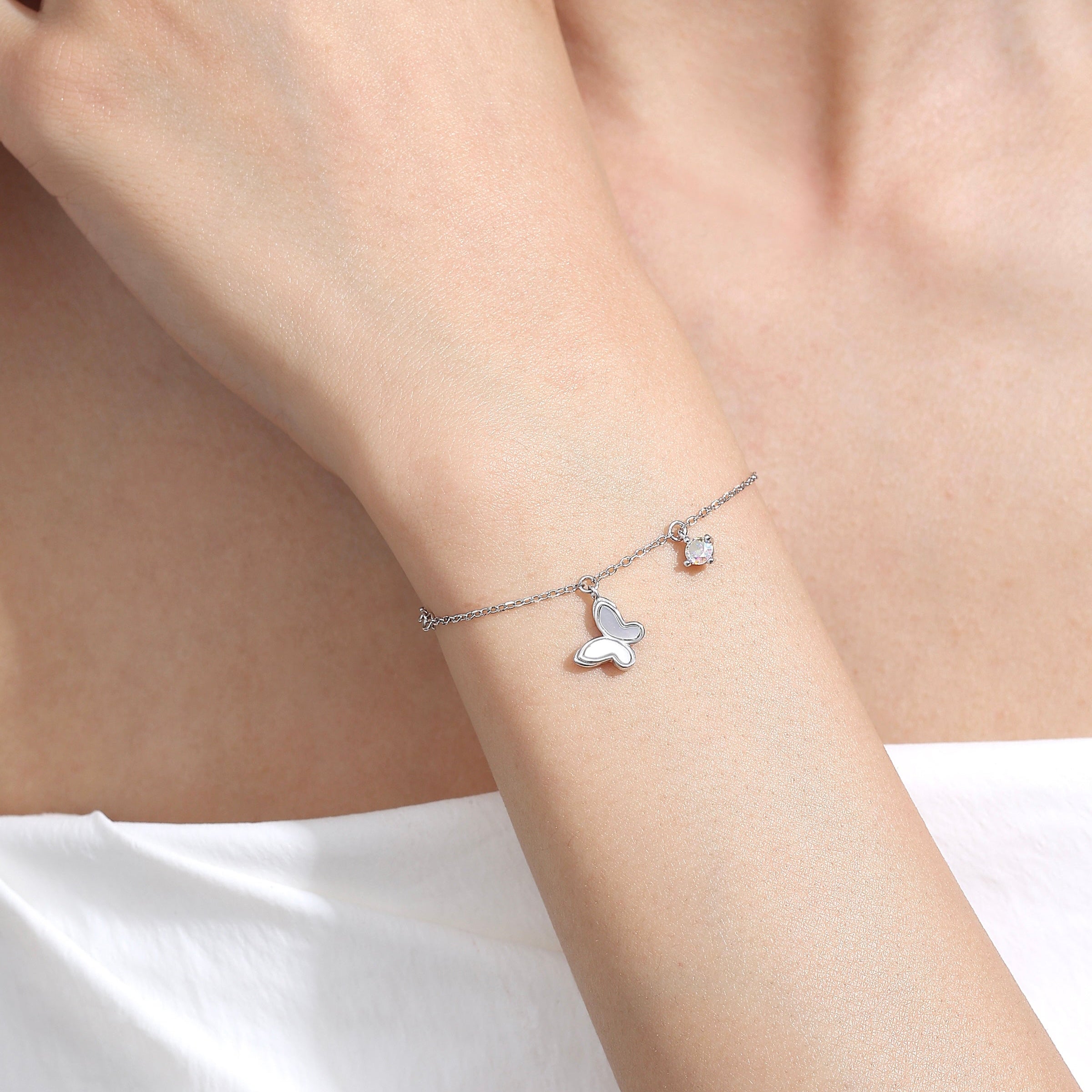 Dimension: 14.5cm + 4cm extension ; Butterfly Charm(1.3cm x 1cm) ; Iridescent CZ Stones(0.4cm)